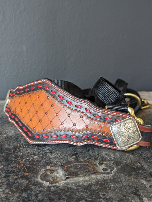 Buckstitched Bronc Noseband on Black Nylon Halter