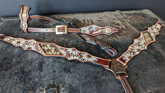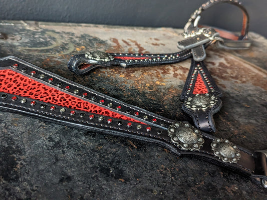 Tooled Red, Turquoise, Gold, & White Tack Set