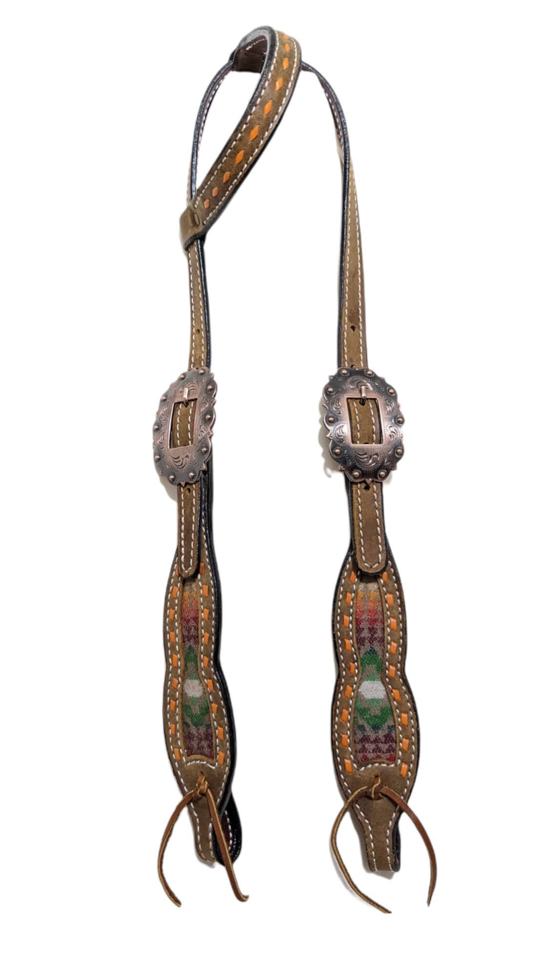 One ear headstall with Authentic Pendleton® Fabric inlay and orange kangaroo buckstitch