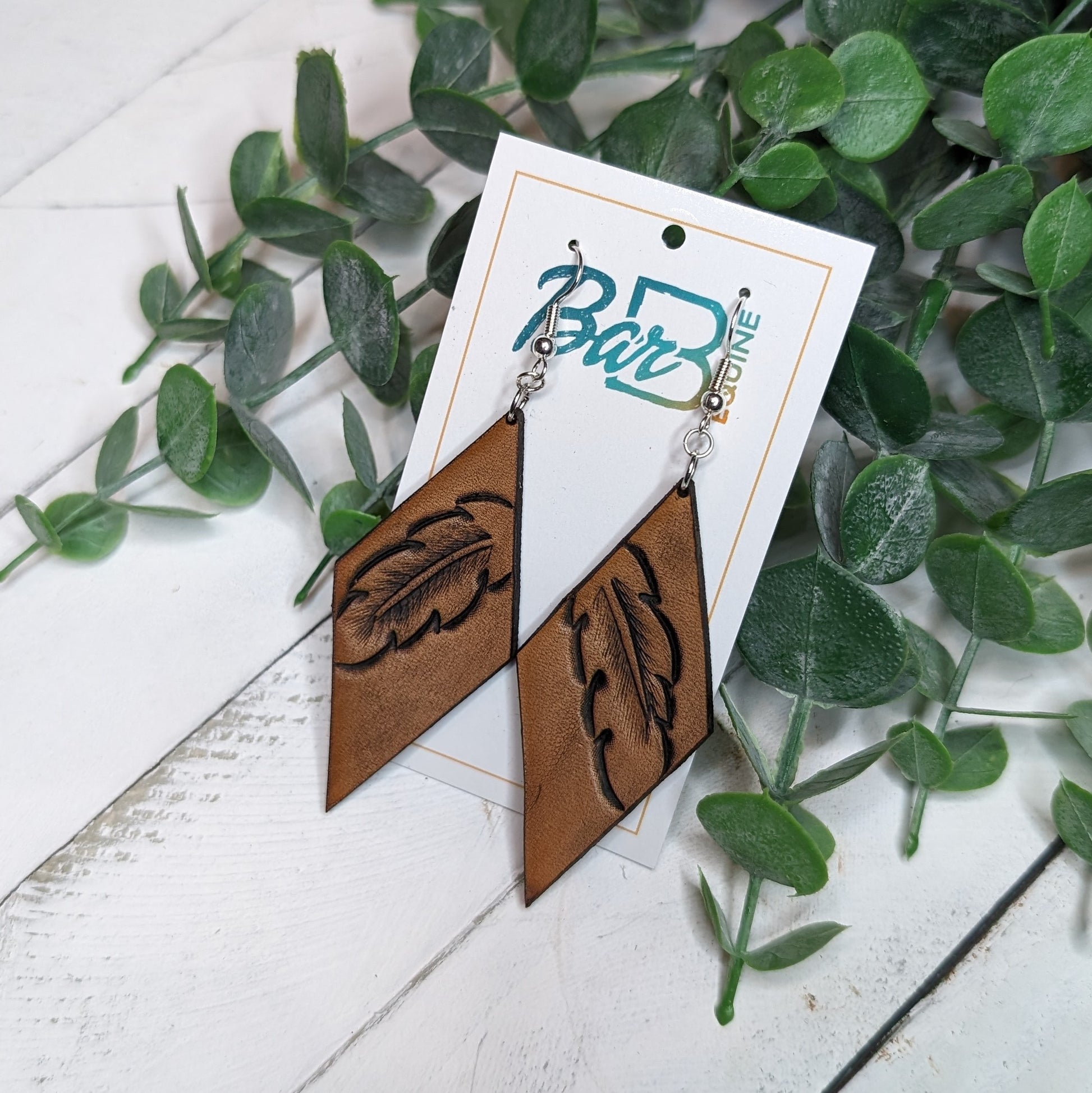 Earrings come on sterling silver plated fish wire hooks and are 100% real leather, leather paint, dye, and antique. These are extremely lightweight and enjoyable to wear.
