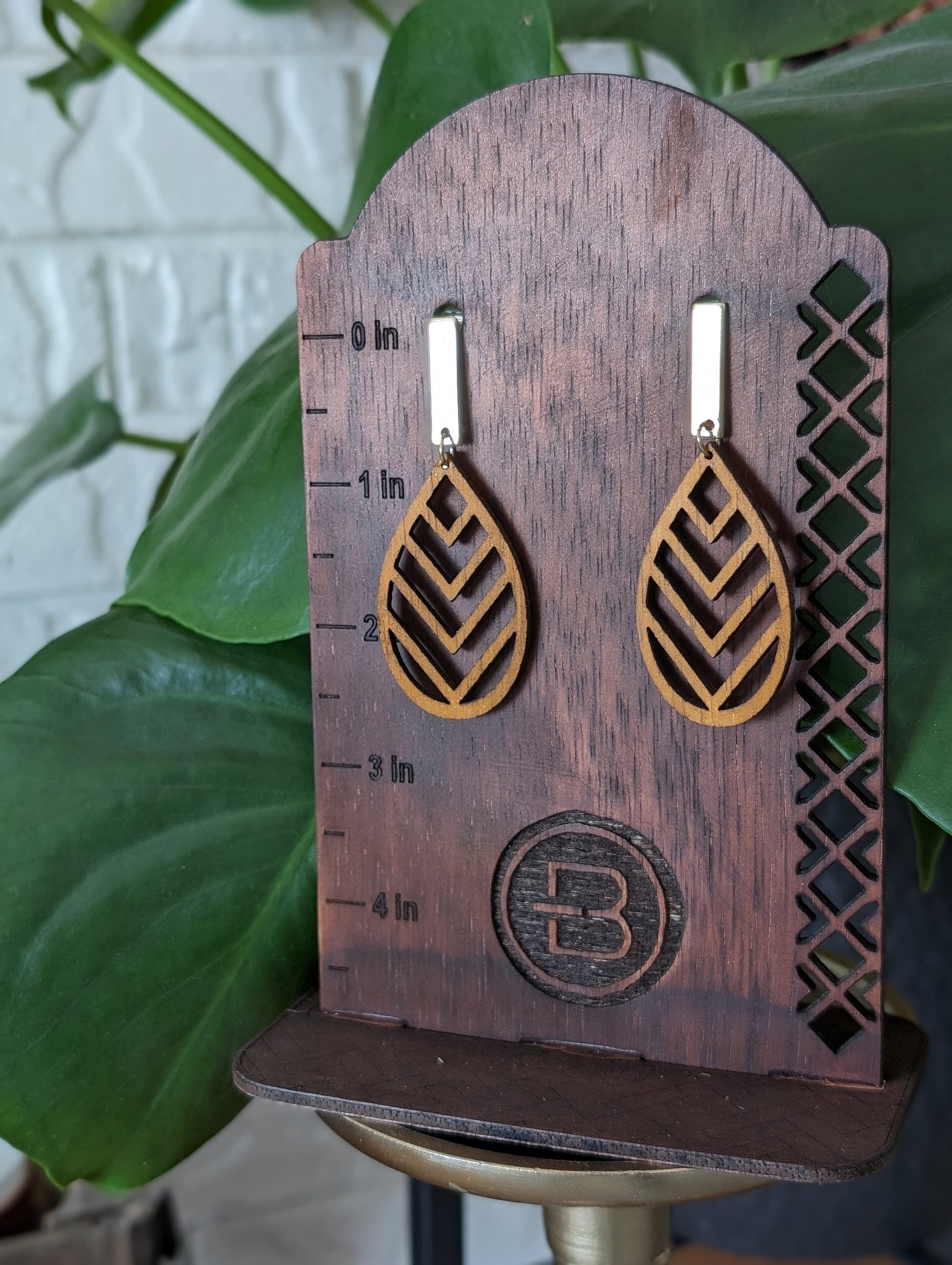 Wooden Chevron Dangle Earrings